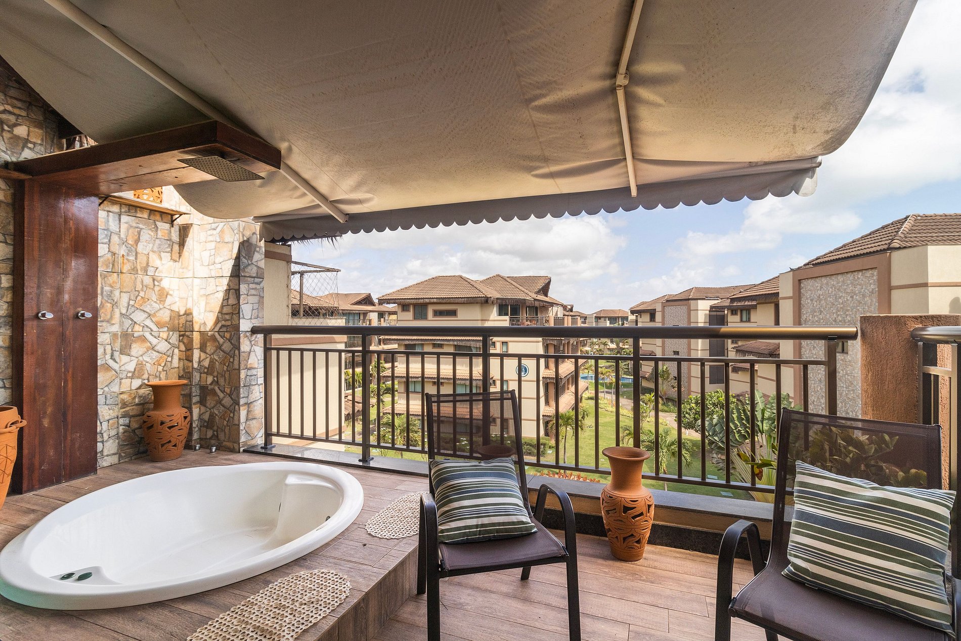 Cada detalhe do imóvel foi cuidadosamente pensado, desde os banheiros modernos e elegantes até os quartos espaçosos e bem decorados. A sala de estar ampla é um convite para momentos de relaxamento, e a varanda, com área para refeições, permite que você aproveite ao máximo a vista panorâmica e o clima tropical.