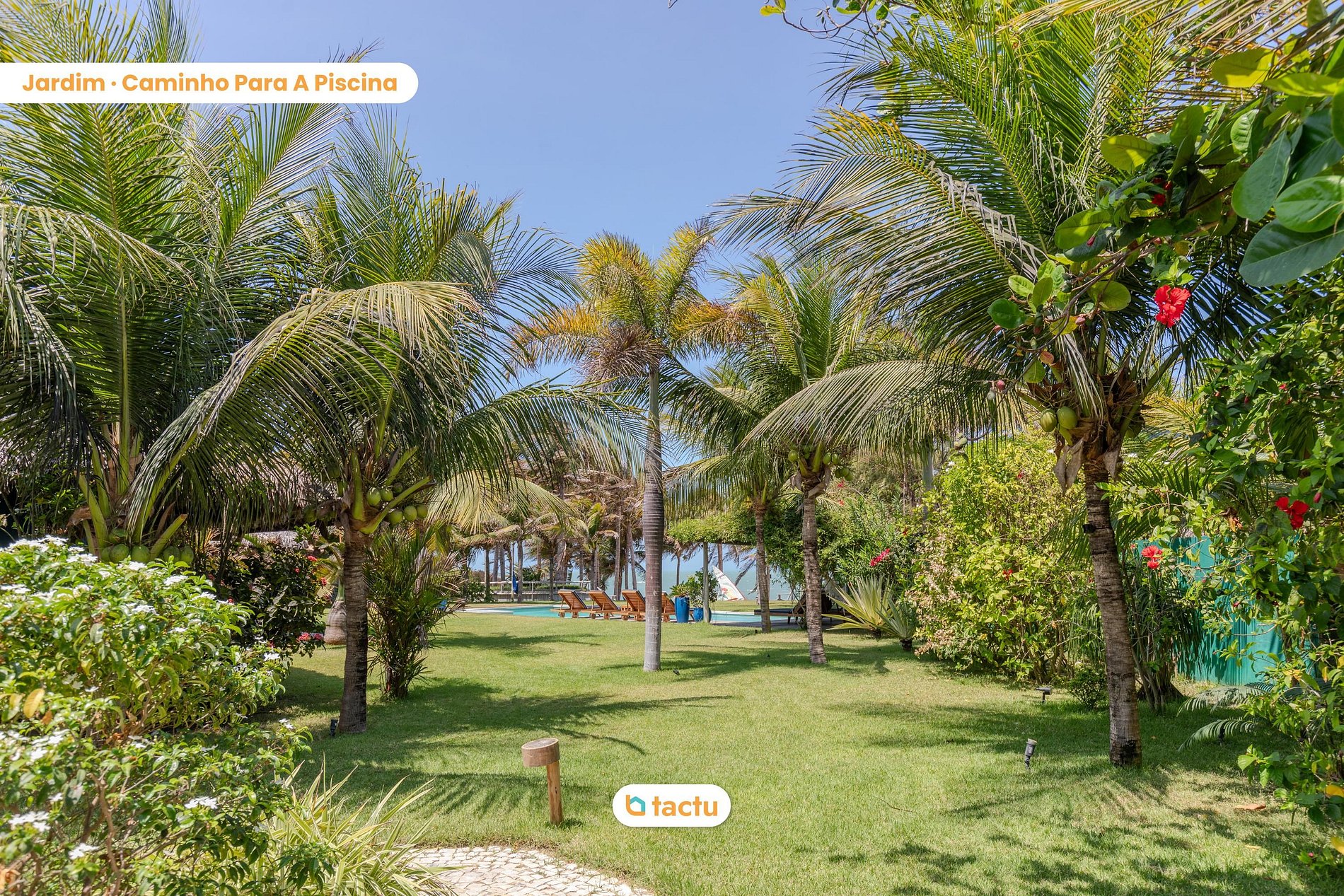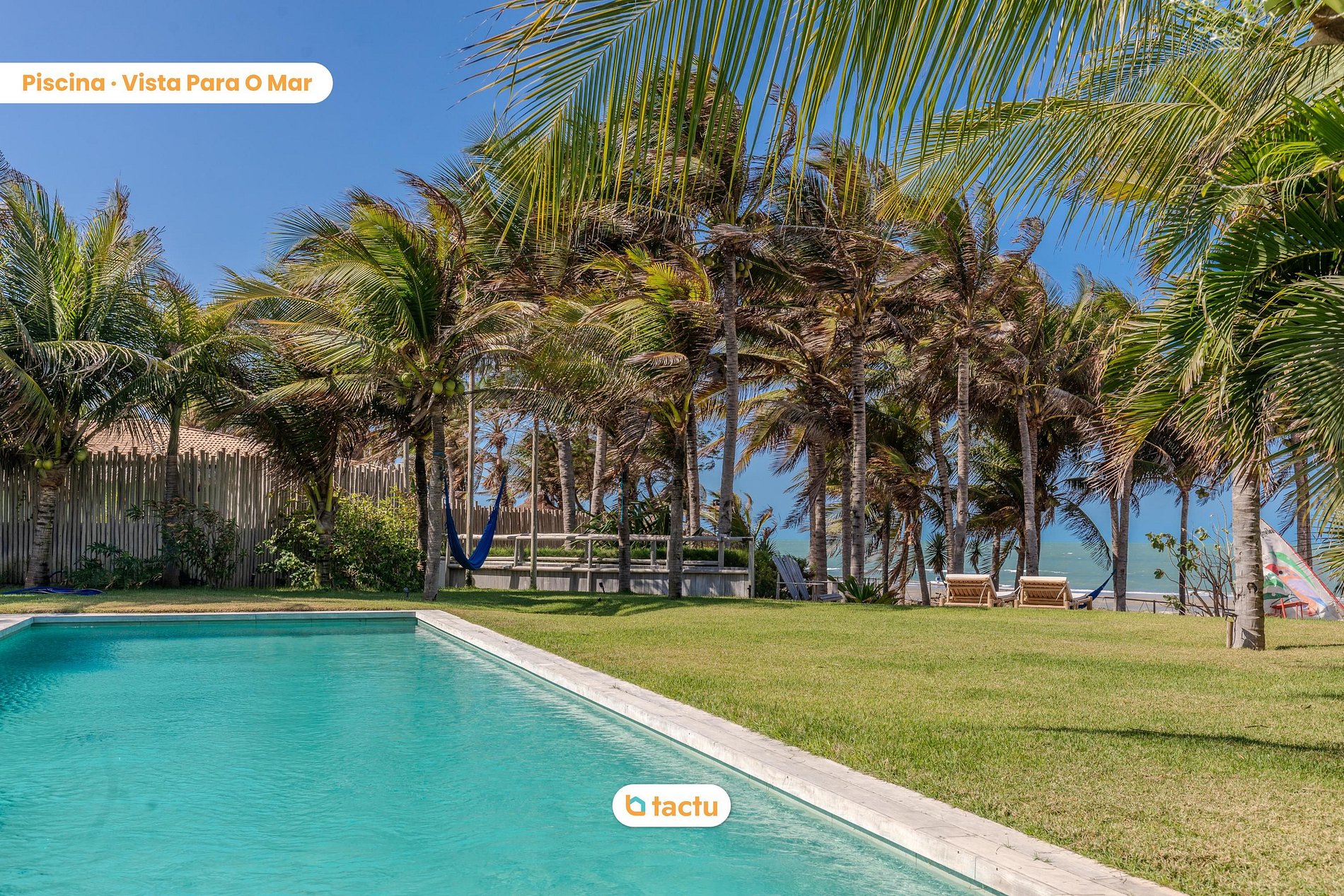 O jardim espaçoso, repleto de coqueiros e plantas tropicais, cria uma atmosfera de paz e privacidade. A poucos passos do mar, a villa oferece uma vista deslumbrante e ininterrupta do oceano e conta com acesso privativo à praia, garantindo uma experiência exclusiva e tranquila. As áreas de descanso, que incluem redes e cadeiras dispostas estrategicamente, permitem que os hóspedes relaxem ao som das ondas e aproveitem a brisa fresca.
