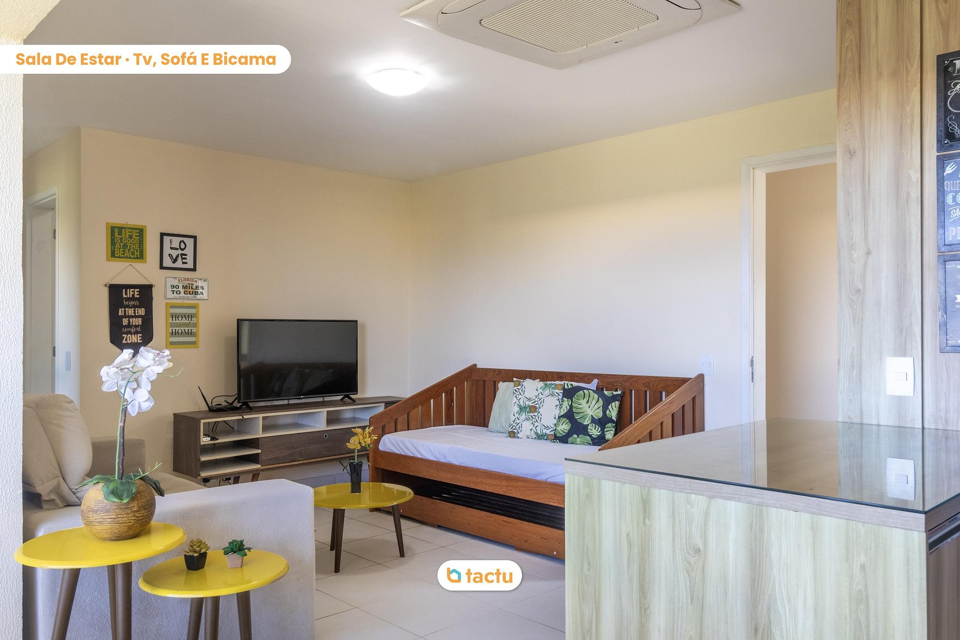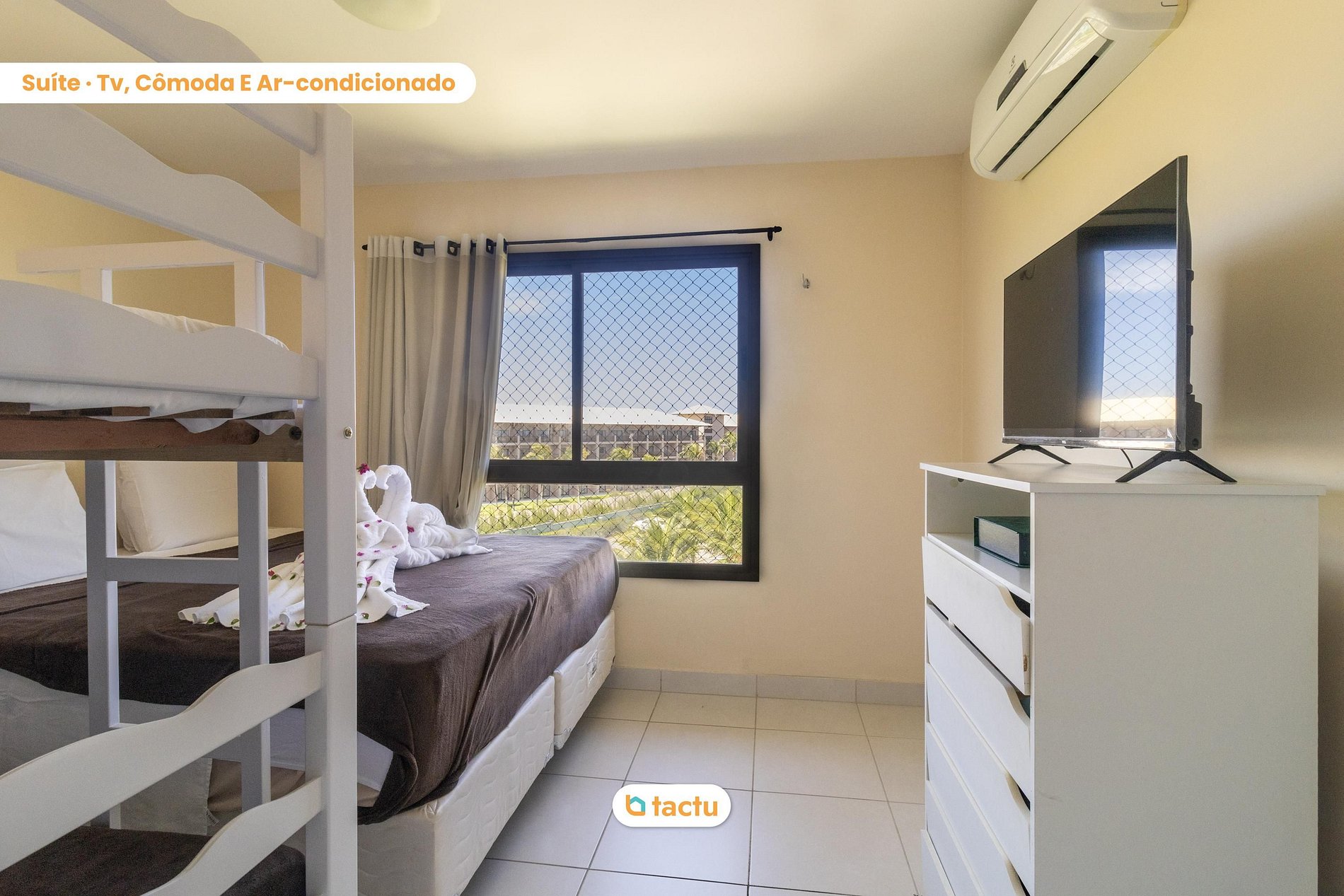 Com um ambiente perfeito para famílias, o apartamento conta com 2 suítes. A primeira suíte possui uma cama queen e uma beliche, enquanto a segunda suíte tem uma cama de casal e banheiro reversível, oferecendo praticidade. Na sala, há um sofá com bicama, garantindo espaço para todos. Os quartos e a sala são climatizados, proporcionando conforto total para sua estadia.
