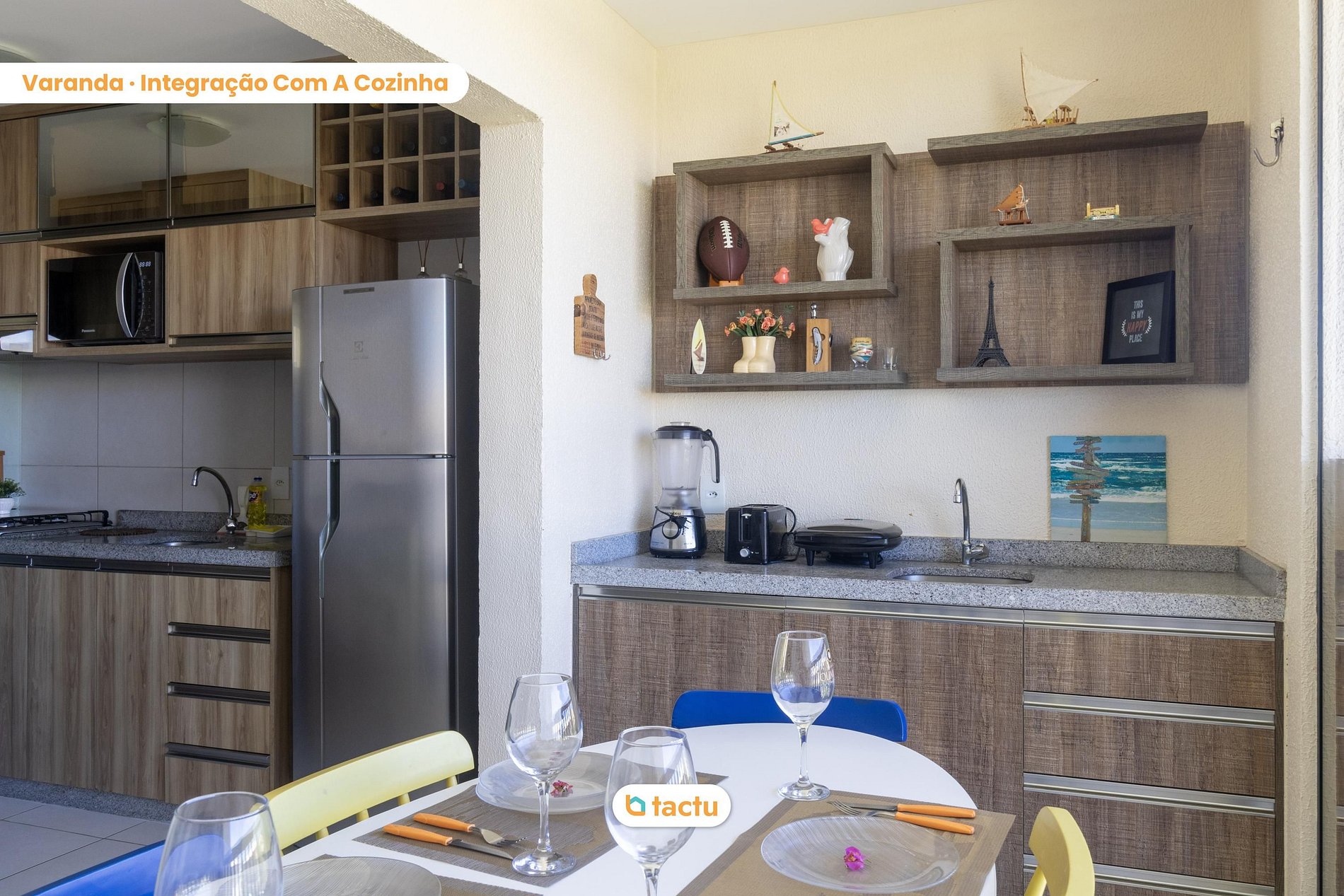 A varanda possui uma cortina de vidro especial e uma mesa ideal para confraternizações em família ou entre amigos. Tudo foi planejado para oferecer o máximo de conforto, incluindo água aquecida nos banheiros para aquele banho relaxante no fim do dia.
