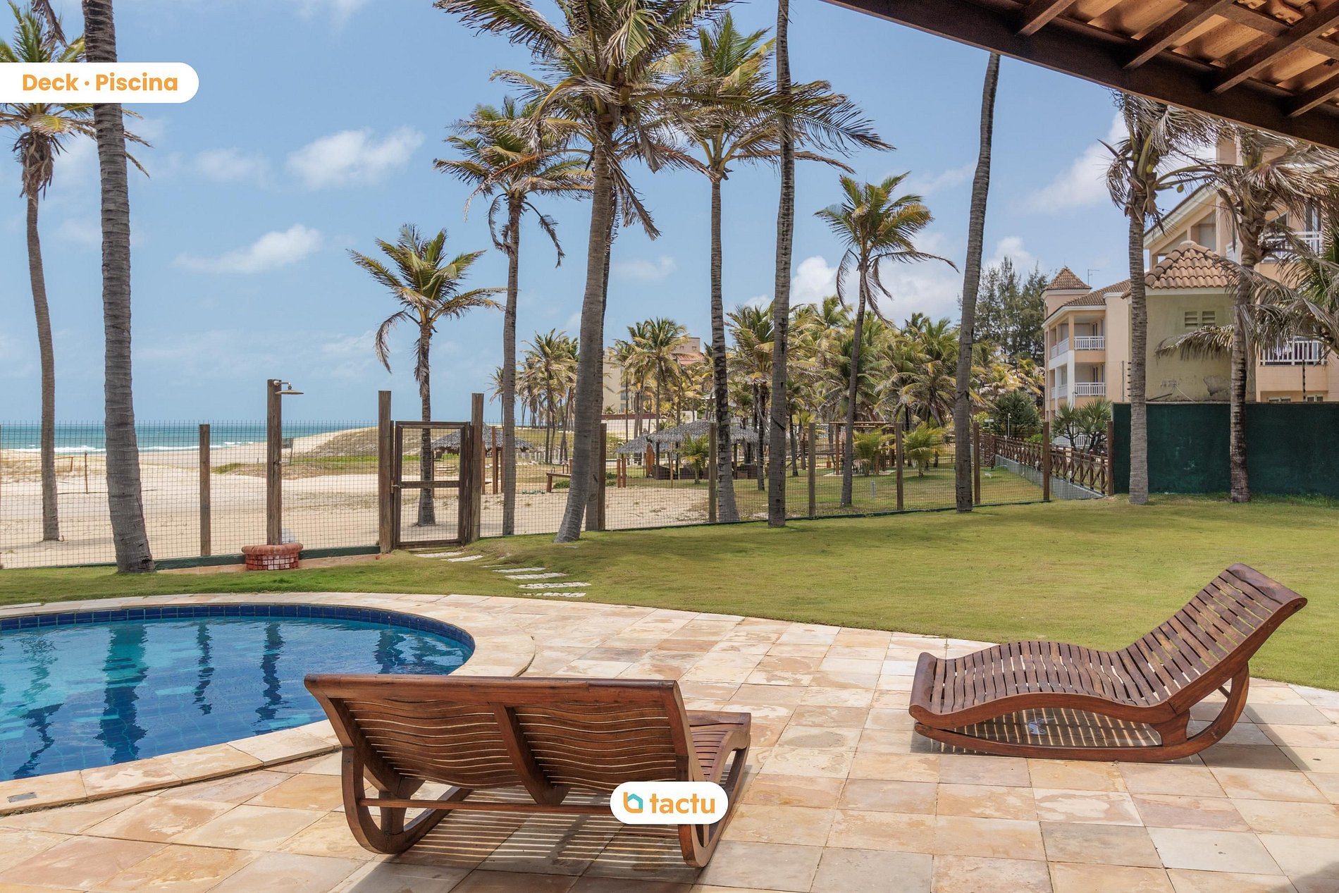 🏊♀️ Ela conta com uma piscina ao lado de um lindo deck voltado para a vista do mar, que é equipado com uma churrasqueira e possui um espaço enorme para aproveitar um final de tarde do seu jeito! Seja pegando um sol ou sentindo a brisa do vento da praia na sombra!