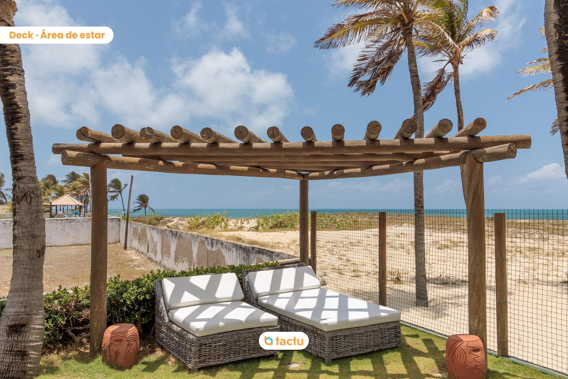 🏊♀️ Ela conta com uma piscina ao lado de um lindo deck voltado para a vista do mar, que é equipado com uma churrasqueira e possui um espaço enorme para aproveitar um final de tarde do seu jeito! Seja pegando um sol ou sentindo a brisa do vento da praia na sombra!