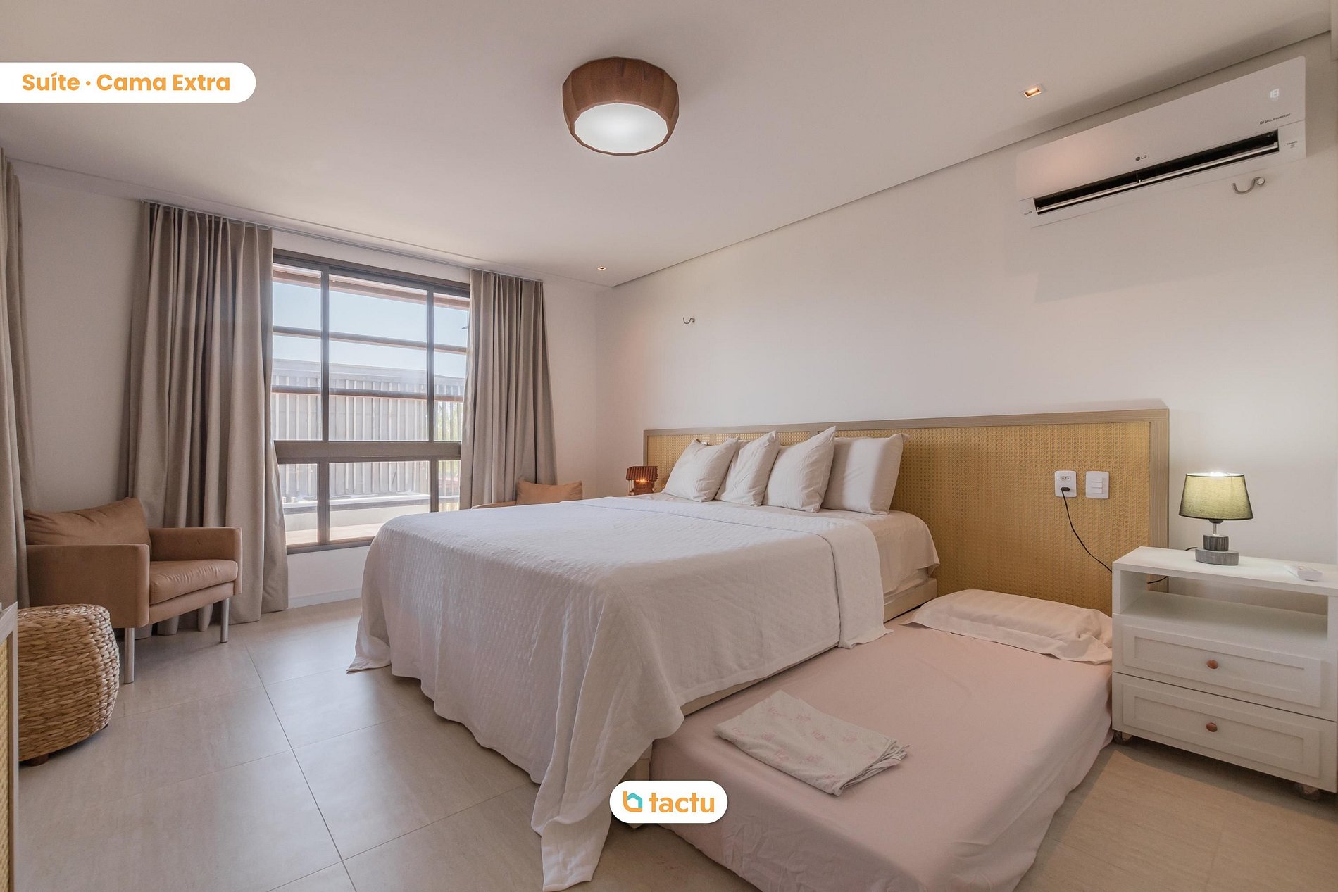 Localizada no condomínio pé na areia The House Flecheiras, esta casa de 145 m² oferece uma experiência completa de conforto, exclusividade e lazer. Com capacidade para até nove pessoas, a acomodação conta com quatro quartos climatizados, sendo três suítes — uma com cama king e duas com cama queen — além de um quarto com duas camas de solteiro, ideal para acomodar bem famílias ou grupos de amigos.