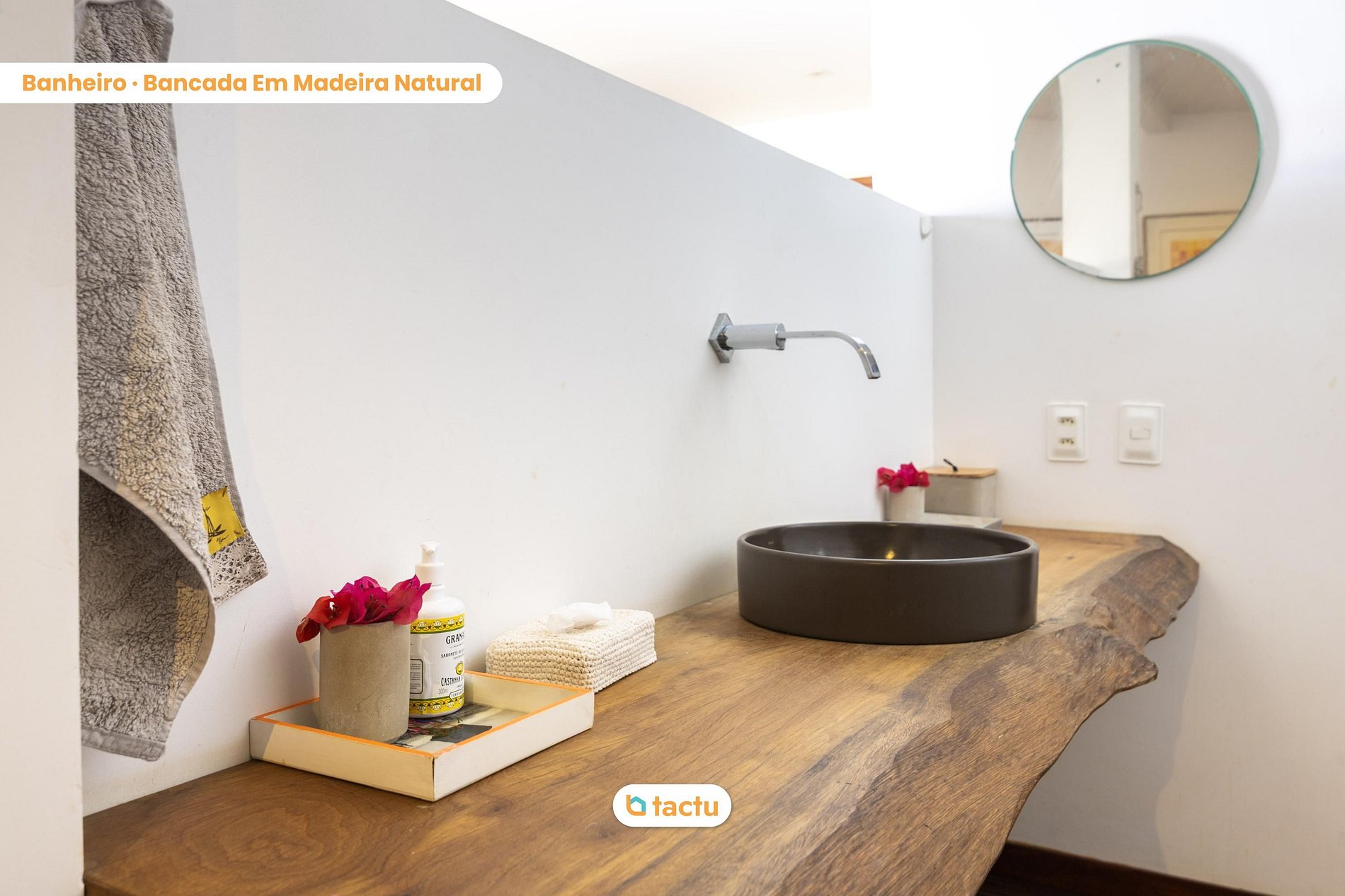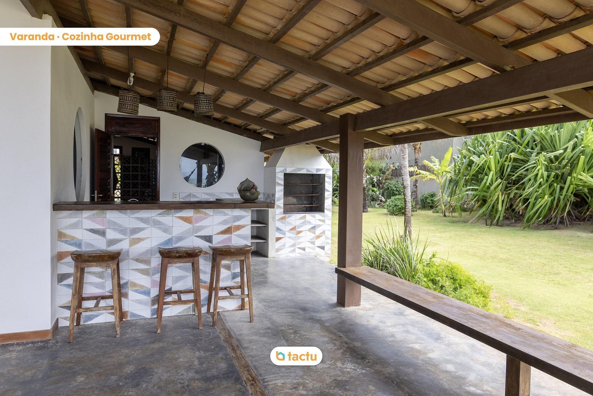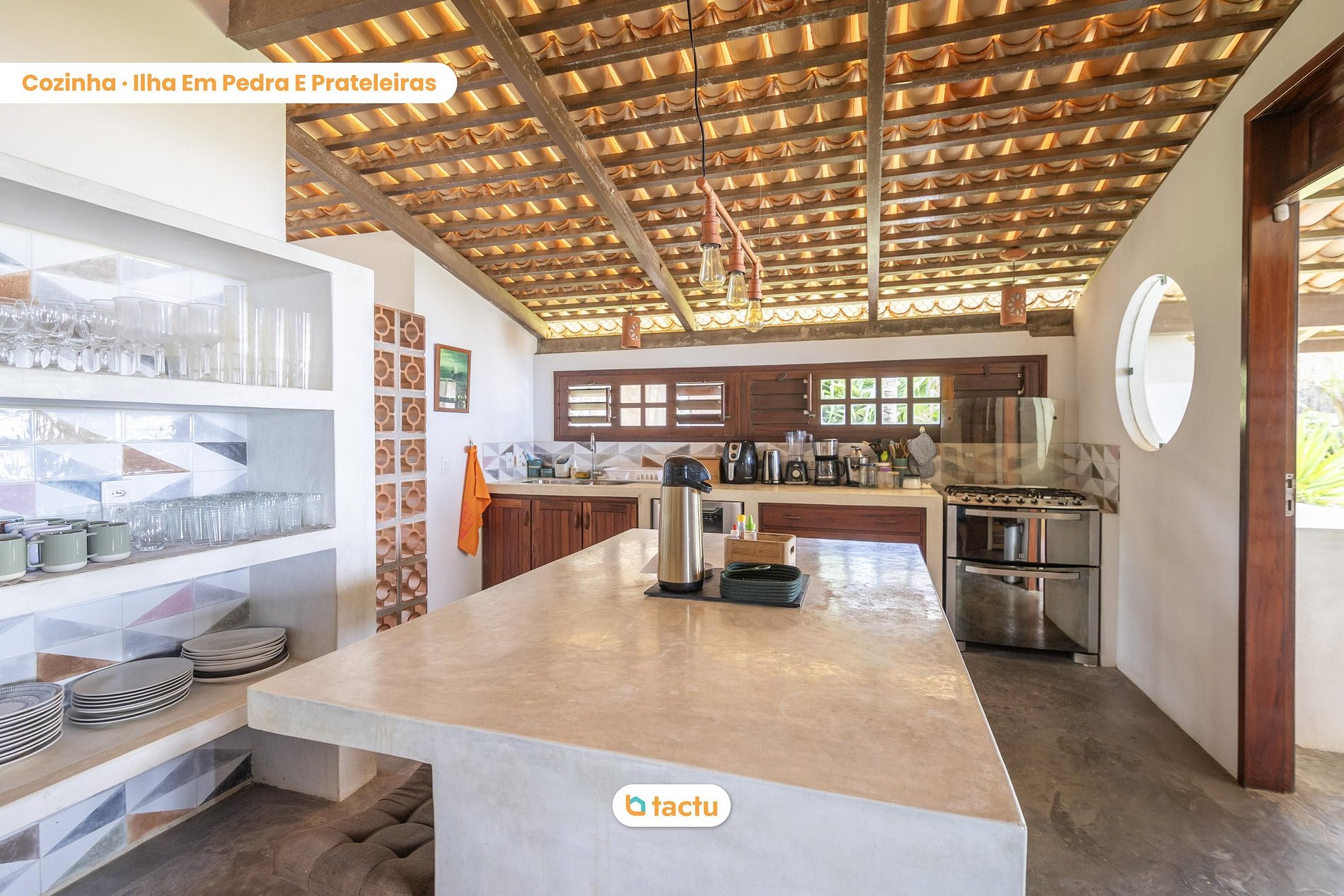 A casa conta também com lavanderia equipada com máquina de lavar, freezer vertical e espaço para armazenar garrafões e filtro de água. Com uma decoração aconchegante e moderna, com destaque para as paredes de cobogós que garantem ventilação e iluminação natural, a Vila Fatecha oferece uma verdadeira experiência de refúgio de luxo e privacidade à beira-mar.