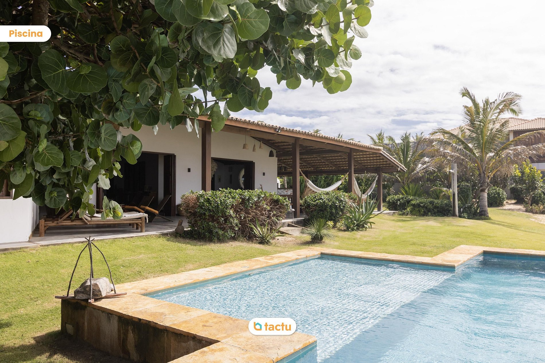 Na área externa, a piscina é o destaque, acompanhada de um gramado amplo que complementa o espaço. Uma churrasqueira fixa e uma mesa de jantar com 12 lugares são ideais para momentos de lazer e confraternização. O espaço ainda oferece quadra de areia para vôlei ou beach tennis, área coberta com espreguiçadeiras para relaxamento e um espaço privado para massagem.