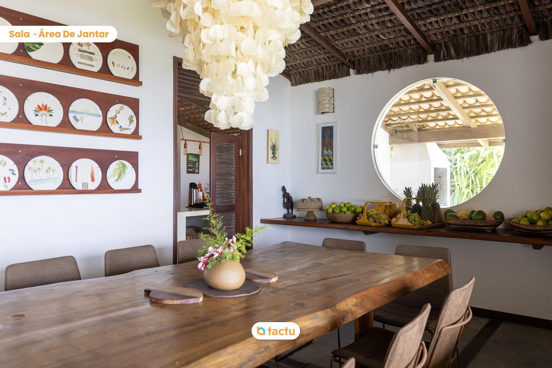 A casa conta também com lavanderia equipada com máquina de lavar, freezer vertical e espaço para armazenar garrafões e filtro de água. Com uma decoração aconchegante e moderna, com destaque para as paredes de cobogós que garantem ventilação e iluminação natural, a Vila Fatecha oferece uma verdadeira experiência de refúgio de luxo e privacidade à beira-mar.