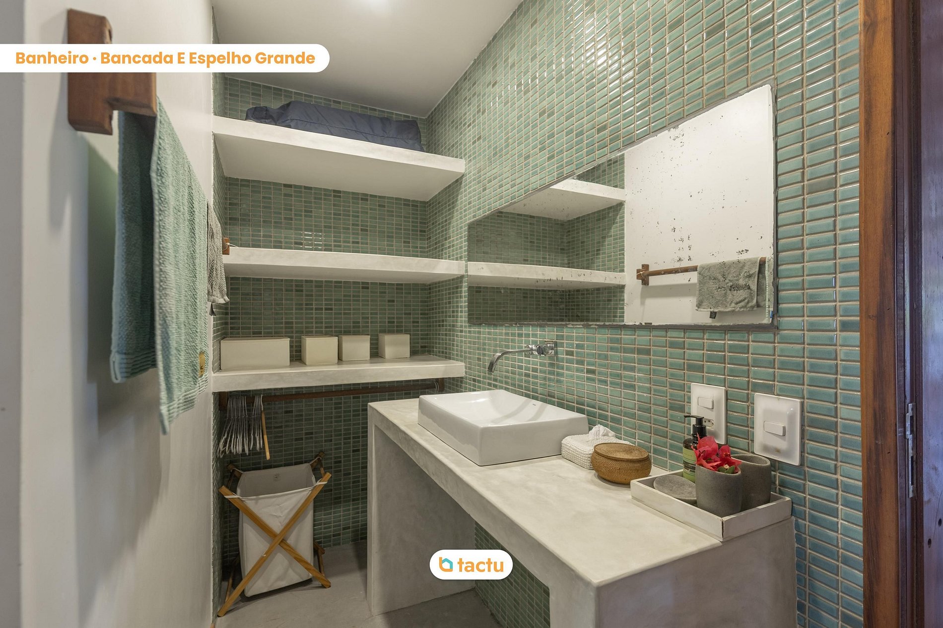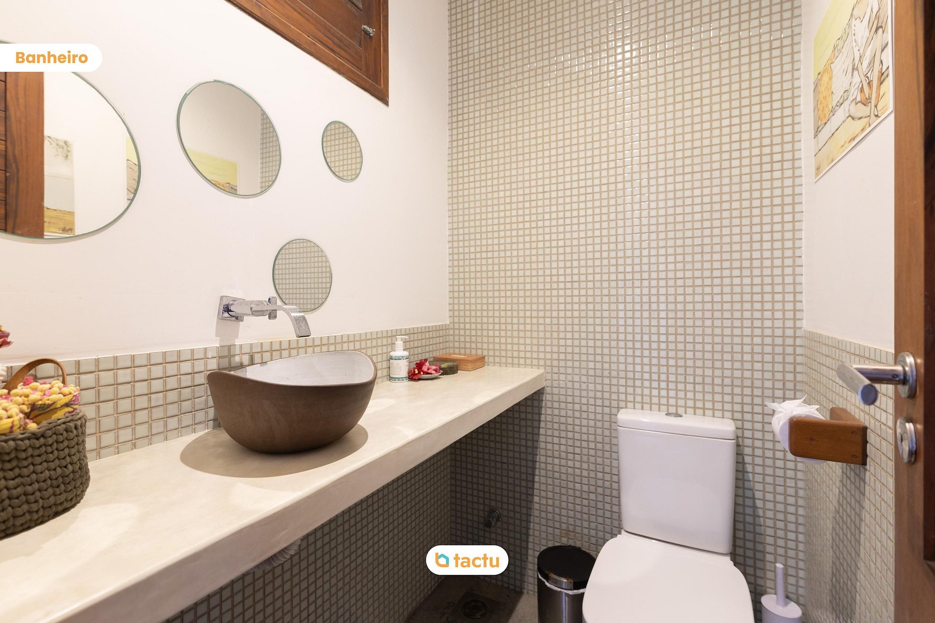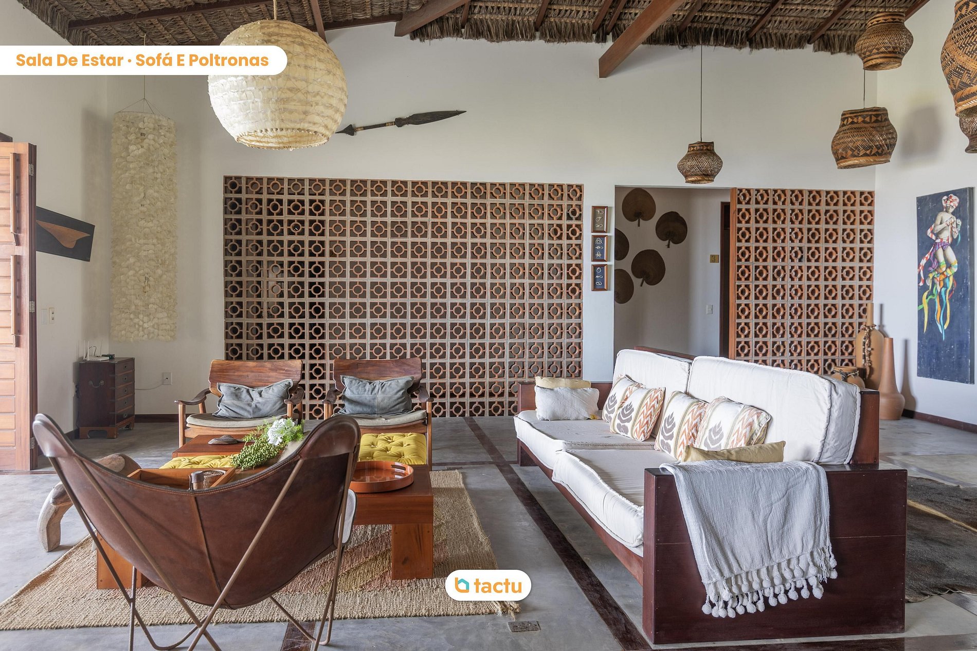 A casa conta também com lavanderia equipada com máquina de lavar, freezer vertical e espaço para armazenar garrafões e filtro de água. Com uma decoração aconchegante e moderna, com destaque para as paredes de cobogós que garantem ventilação e iluminação natural, a Vila Fatecha oferece uma verdadeira experiência de refúgio de luxo e privacidade à beira-mar.