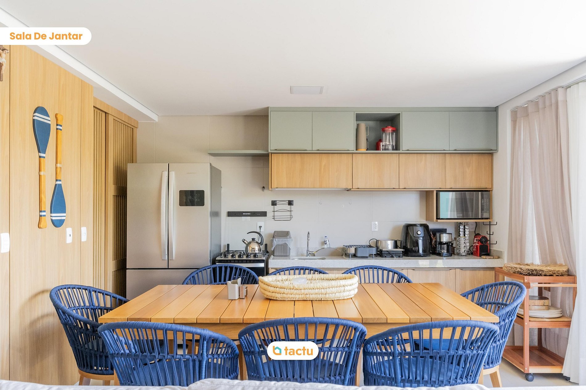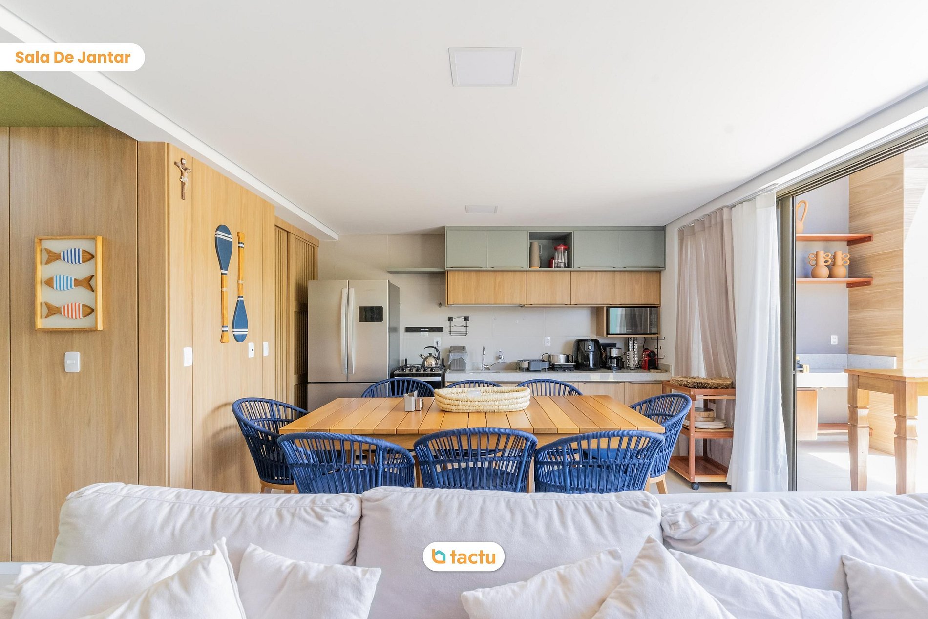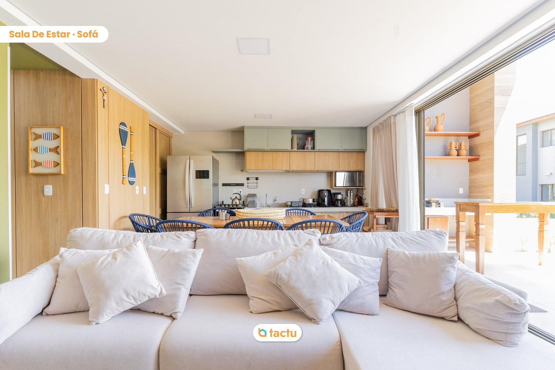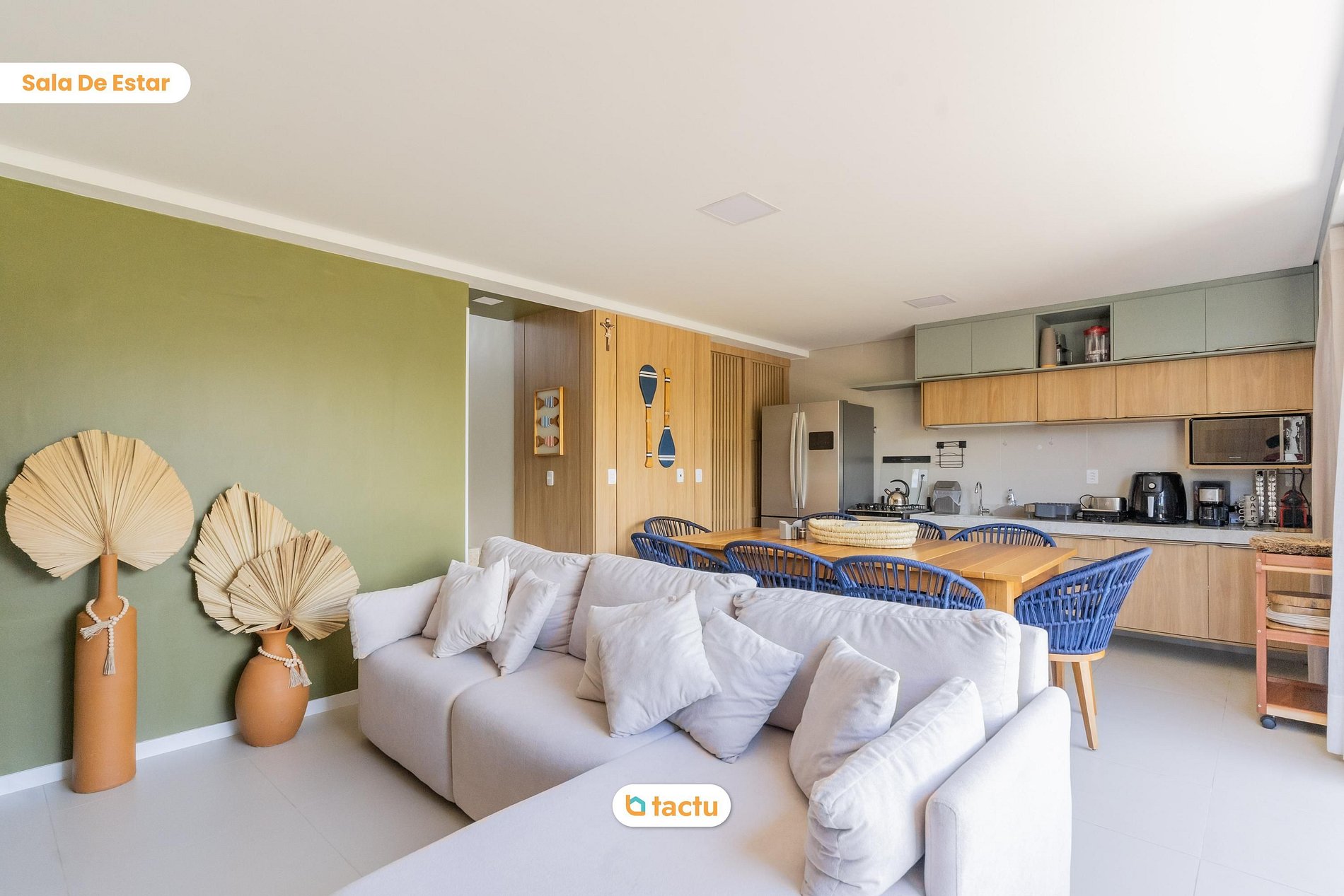 Bem-vindo(a) a esta charmosa casa localizada em um condomínio exclusivo frente mar em Flecheiras. O espaço foi pensado para oferecer conforto e praticidade, ideal para famílias e grupos que desejam desfrutar de dias especiais à beira-mar. A área externa conta com pia de apoio para refeições, lounge aconchegante com sofá, poltronas e mesa de centro, além de mesas para refeições, incluindo uma mesa de jantar com centro giratório para sete lugares. Na área interna, a sala de estar possui sofá amplo, rack, TV de 65’’ e sound bar JBL, perfeita para momentos de lazer. A sala de jantar dispõe de mesa com oito lugares em um ambiente integrado e acolhedor, enquanto a cozinha é completa, equipada com fogão de quatro bocas, geladeira frost free french door, micro-ondas, airfryer, cafeteiras de cápsula e tradicional, sanduicheira, torradeira, liquidificador e jogos de refeição para até doze pessoas. A área de serviço oferece máquina de lavar, gelágua e ventiladores de apoio, além de um lavabo para maior praticidade.